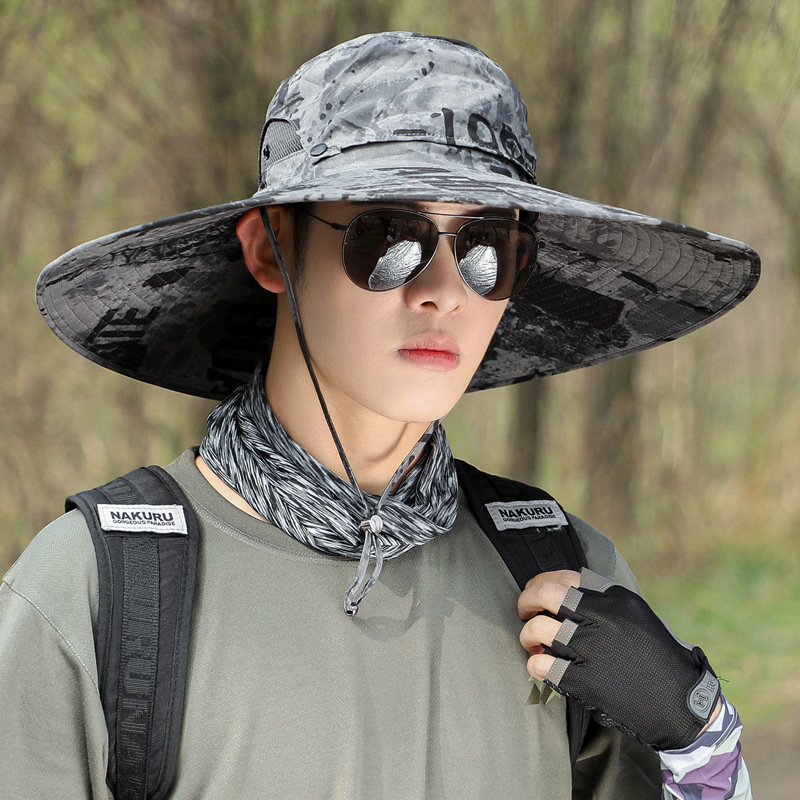 Topi matahari Pria Wanita, topi pelindung matahari luar ruangan, topi nelayan, topi bersepeda, pinggiran besar, topi jala, topi ekspor