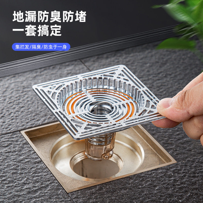 Penutup saluran air lantai persegi, perangkat deodoran kamar mandi, jaring filter anti serangga universal, penutup renovasi artefak deodoran