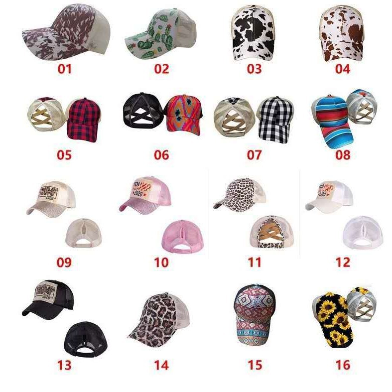 2020 grosir lintas batas topi silang wanita topi bisbol Eropa dan Amerika motif macan tutul kembali musim panas topi jala ekor kuda
