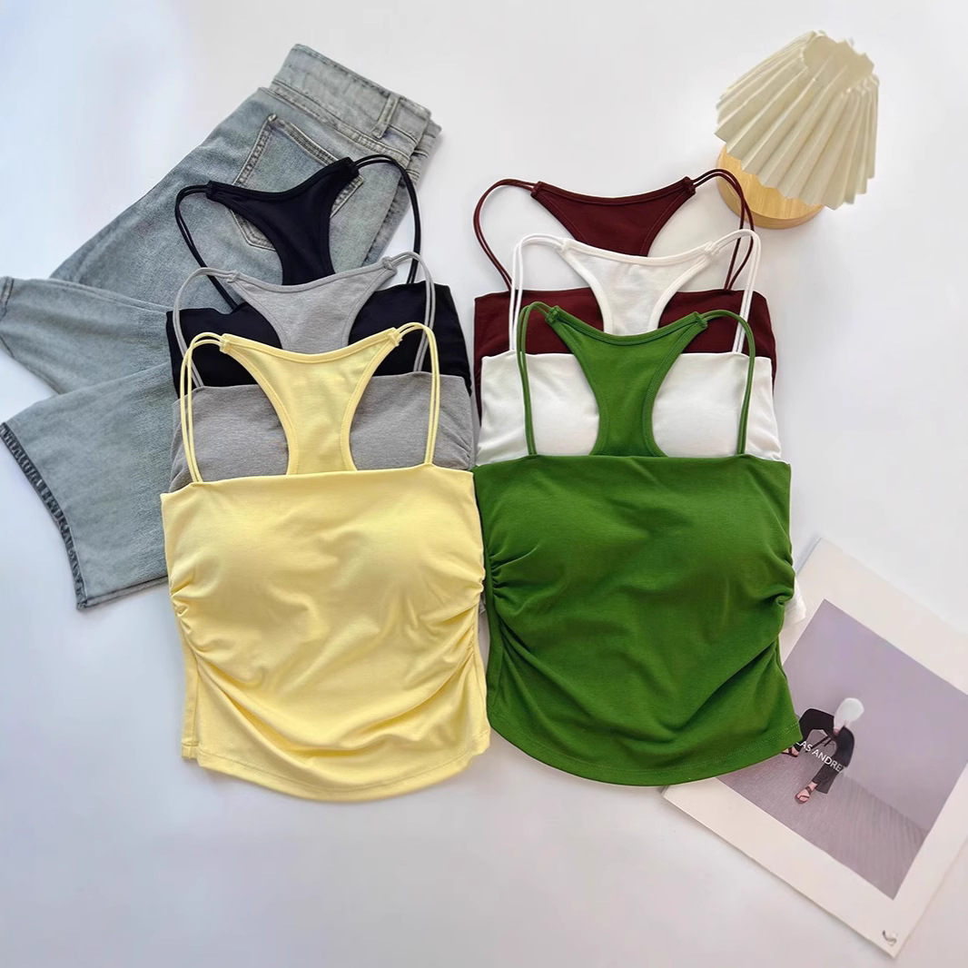 Rompi Tali Kecil Model Baru Bra Punggung Cantik Dipakai Luar Musim Panas Wanita Atasan Model Pendek Terlihat Ramping Tanpa Lengan