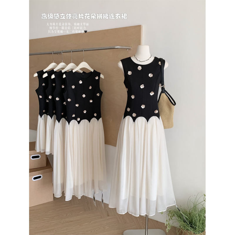 小众设计感立体花拼接纱裙连衣裙系千金无袖背心裙礼裙