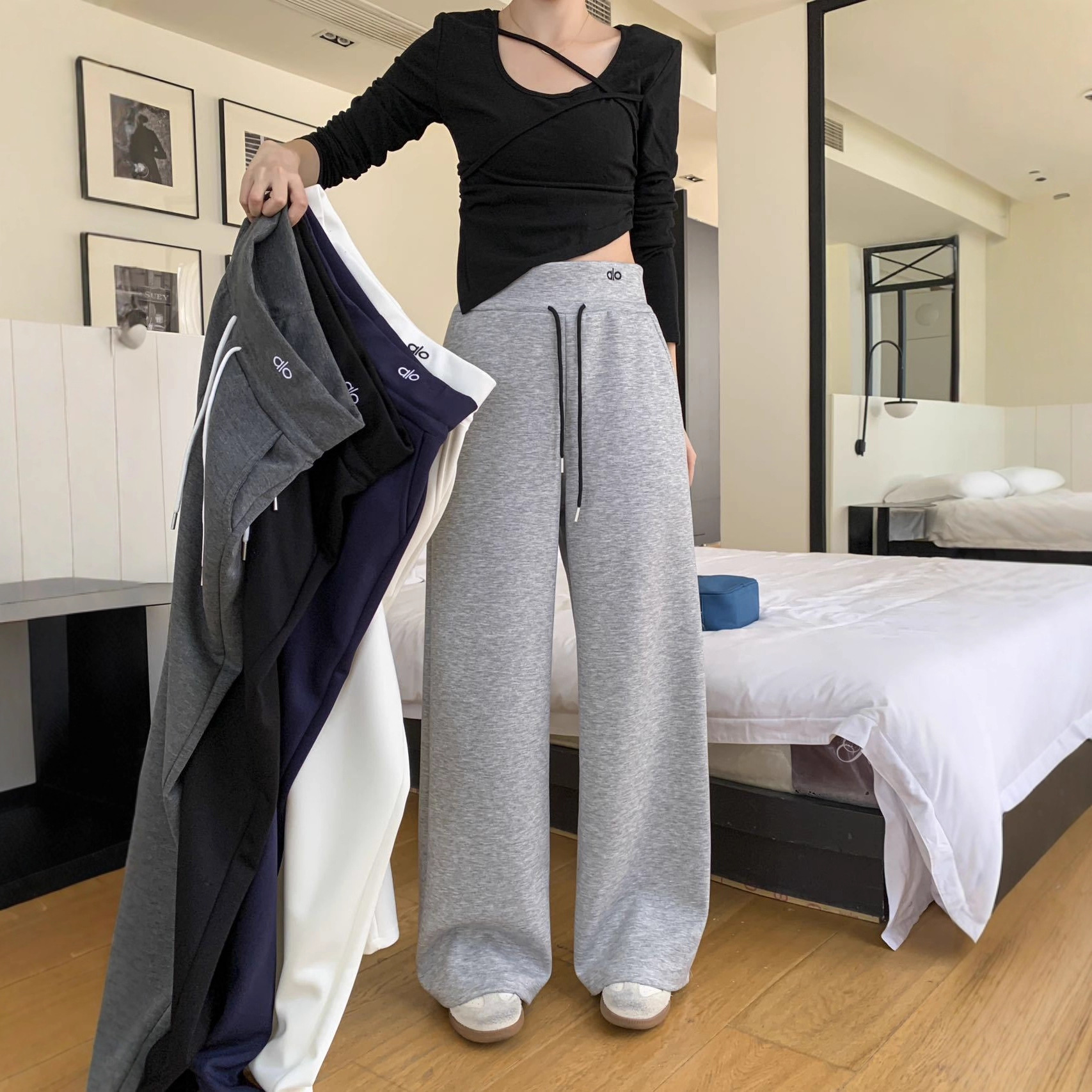 早秋空气棉休闲运动裤女2025新款字母刺绣直筒阔腿裤高腰抽绳卫裤