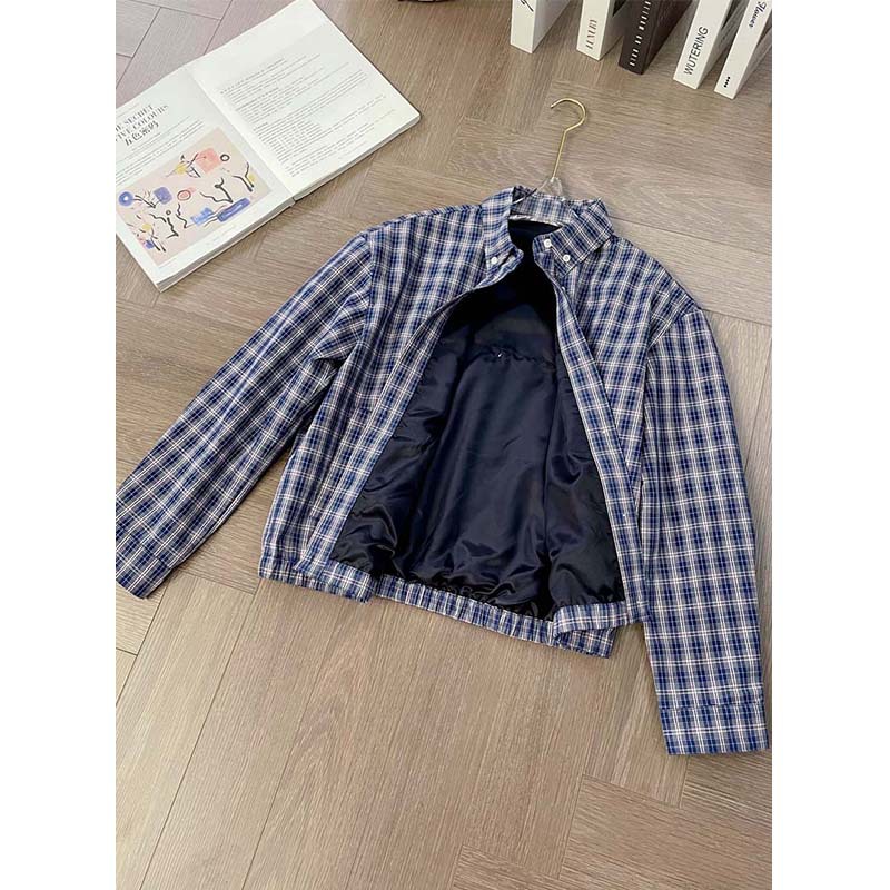 M*IU风蓝白格子女装外套!品质王!后背纽扣拼接设计~爆品重推
