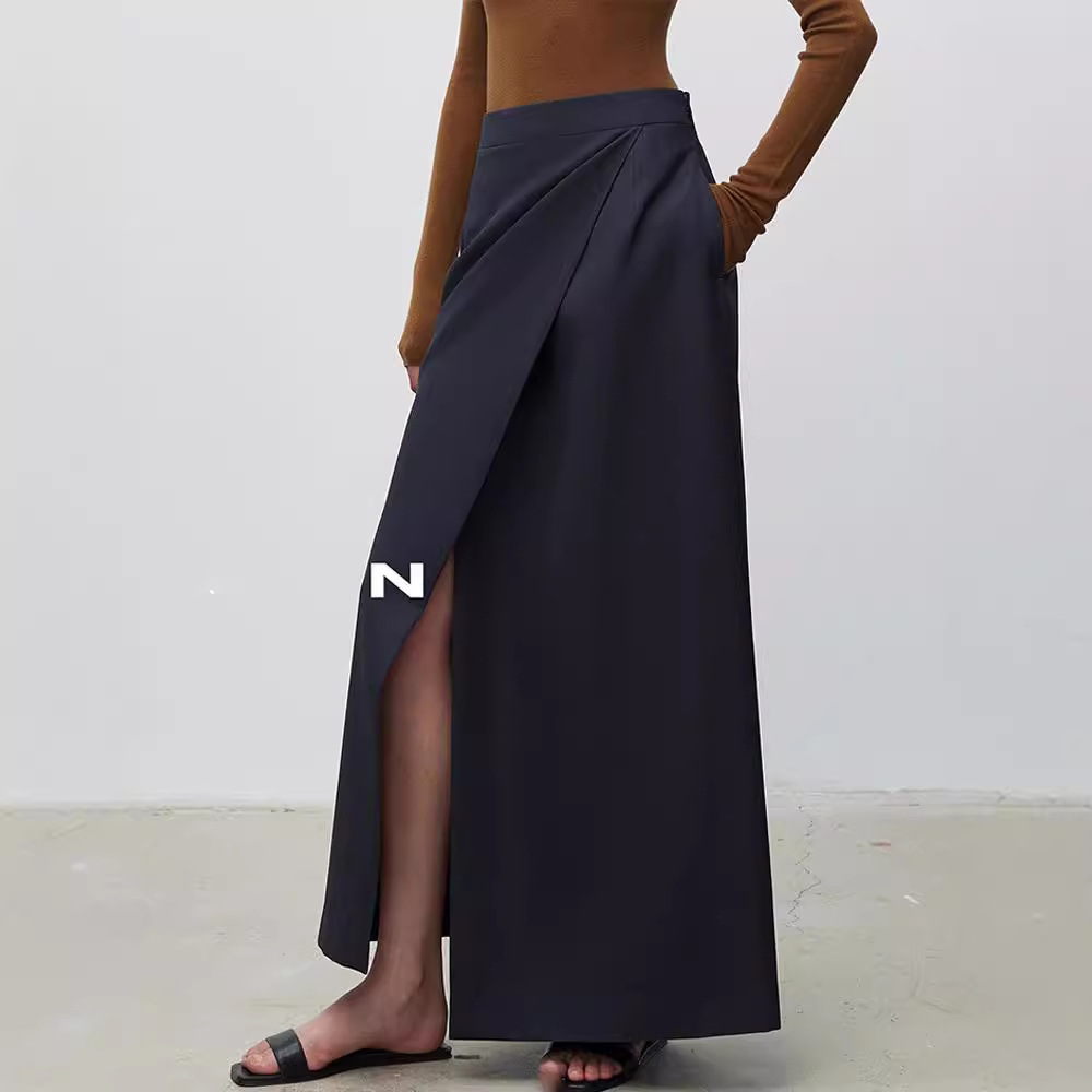 2025 Pakaian Wanita Lintas Batas Eropa dan Amerika Gaun Terbuka Warna Polos Rok Panjang Terbuka Tinggi Punggung Terbuka Seksi Modis Model Baru