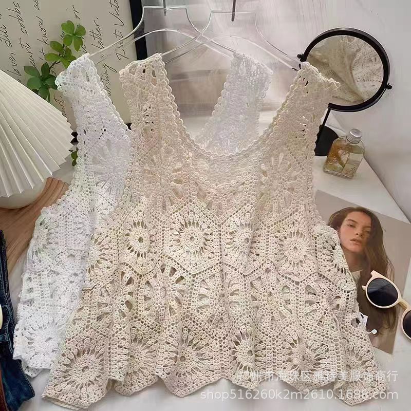 Kamisol desain rajut hollow-out artistik Retro pakaian luar musim gugur wanita atasan niche pendek pelangsing longgar