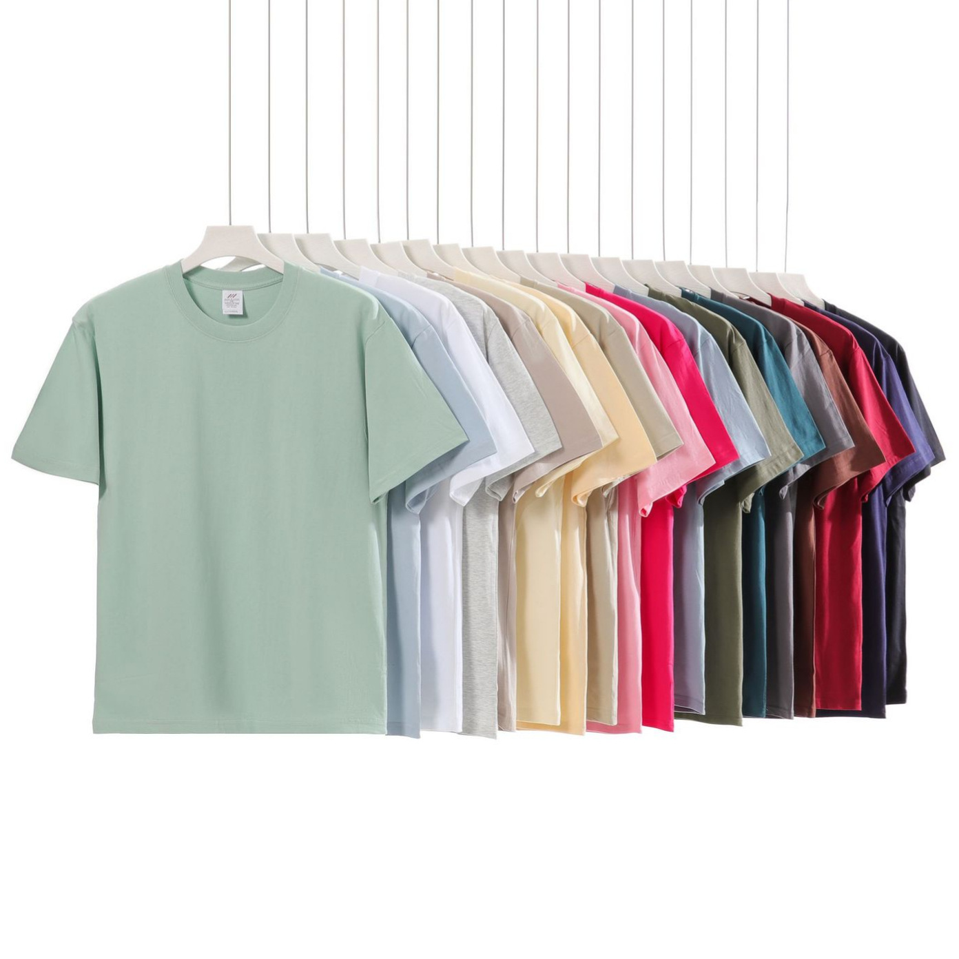 Kaus lengan pendek pria dan wanita, T-shirt katun murni warna polos leher bulat trendi musim semi dan panas 230g