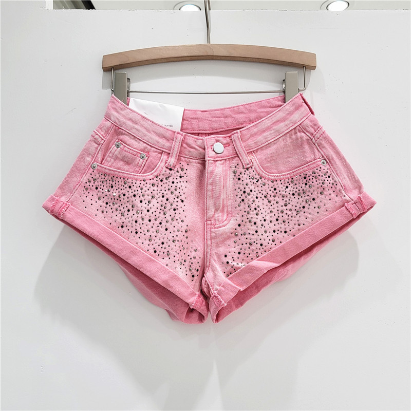 Celana pendek Denim pengeboran panas Eropa industri berat musim panas baru stasiun Eropa celana pendek pelangsing pinggang tinggi celana kaki lebar mode baru 2023