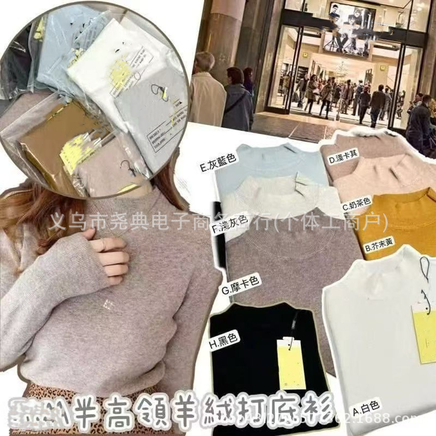 ZA*半高领羊绒打底衫八色秋冬女士长袖打底衫条纹显瘦高级打底衫