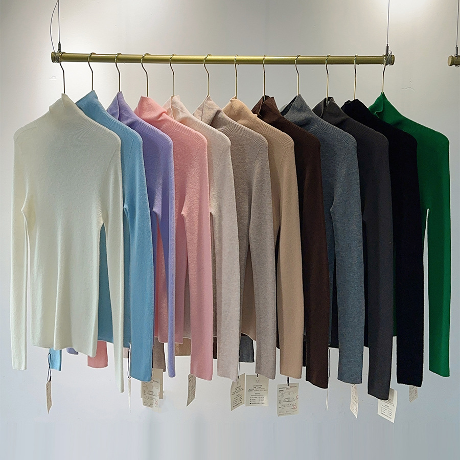 Sweater wol dasar longgar wanita dengan kerah setengah tinggi tanpa jahitan yang serbaguna untuk musim gugur dan musim dingin.