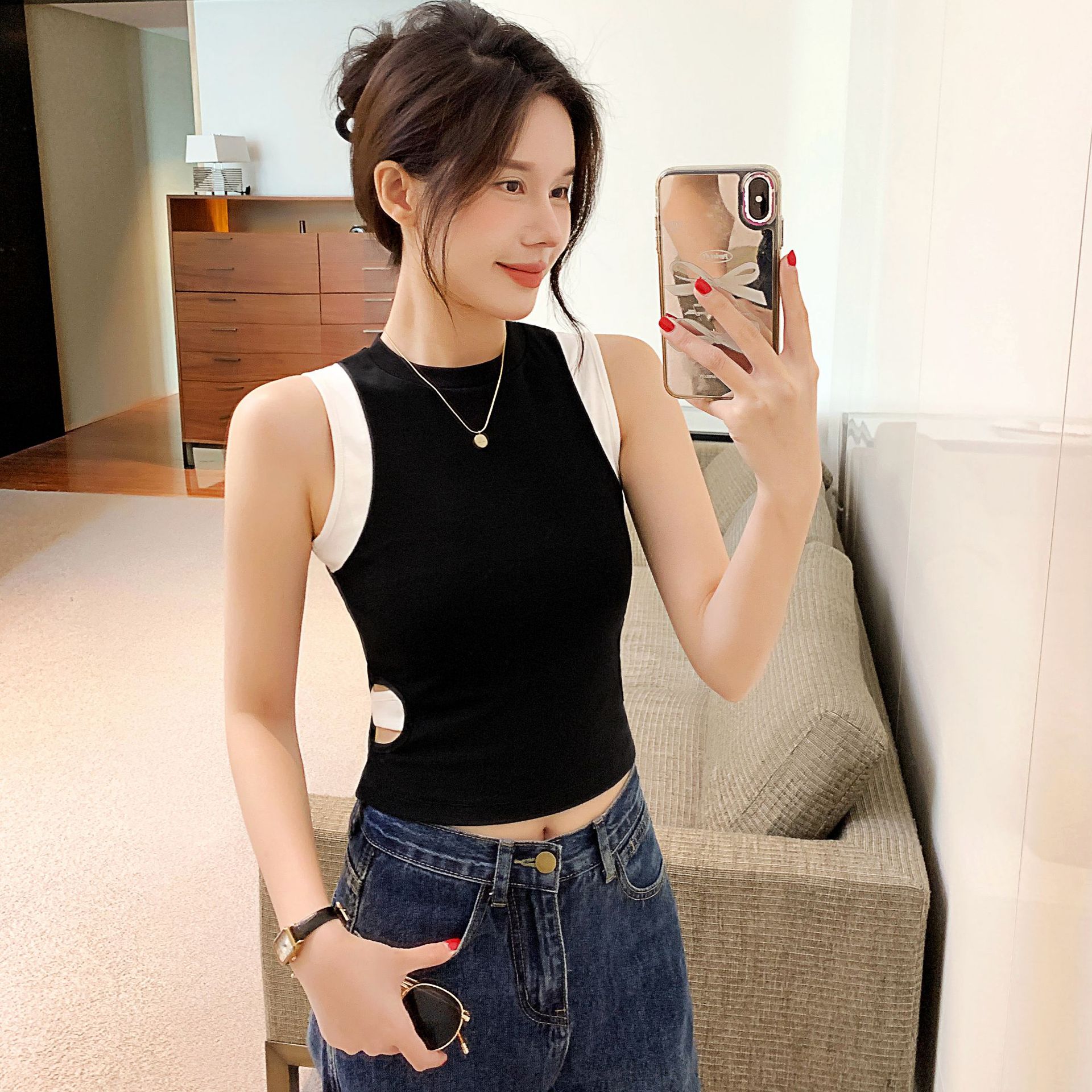 黑色吊带背心女内搭春夏2025新款撞色拼接遮副乳设计感小众上衣