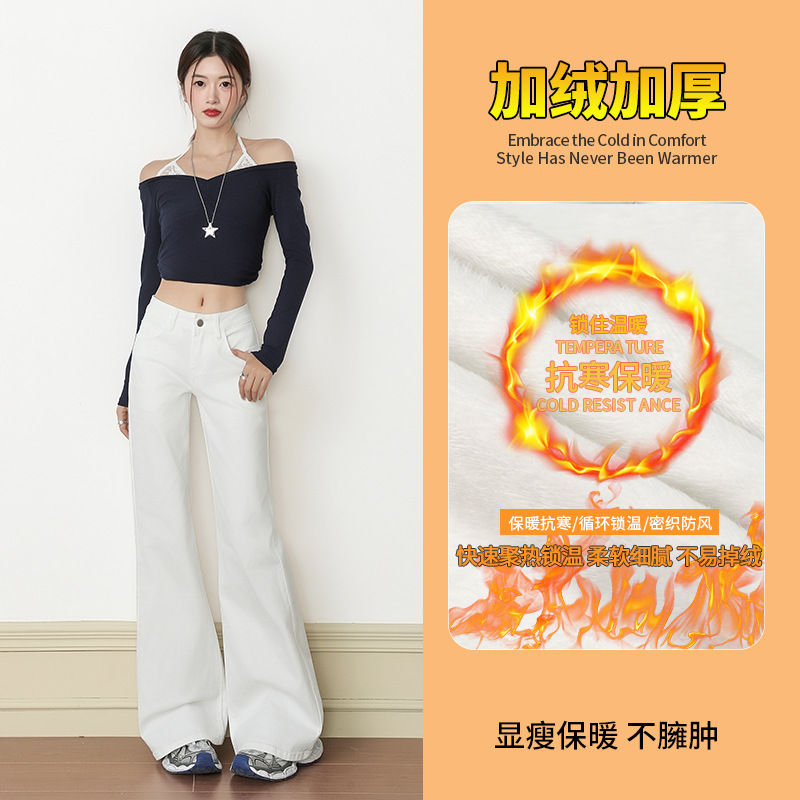 美式黑色加绒低腰喇叭裤女2025新款冬装不贴腿百搭显瘦弹力牛仔裤