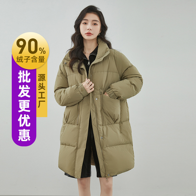 平湖羽绒服女中长款2025冬季新款高端立领韩版加厚外套小个子批发