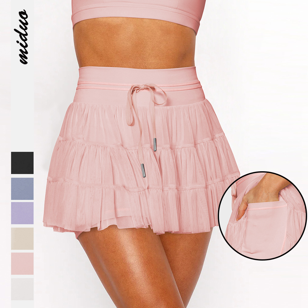 Rok anti-terlihat terlaris lintas batas dengan rok lipit jala berikat tali, rok setengah panjang musim panas, rok mewah