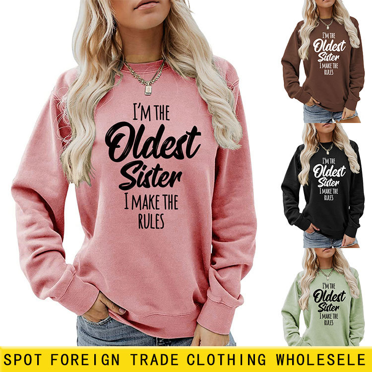 Amazon eBay situs independen lintas batas I'M The Oldest fashion letter print pullover sweatshirt kemeja lengan panjang