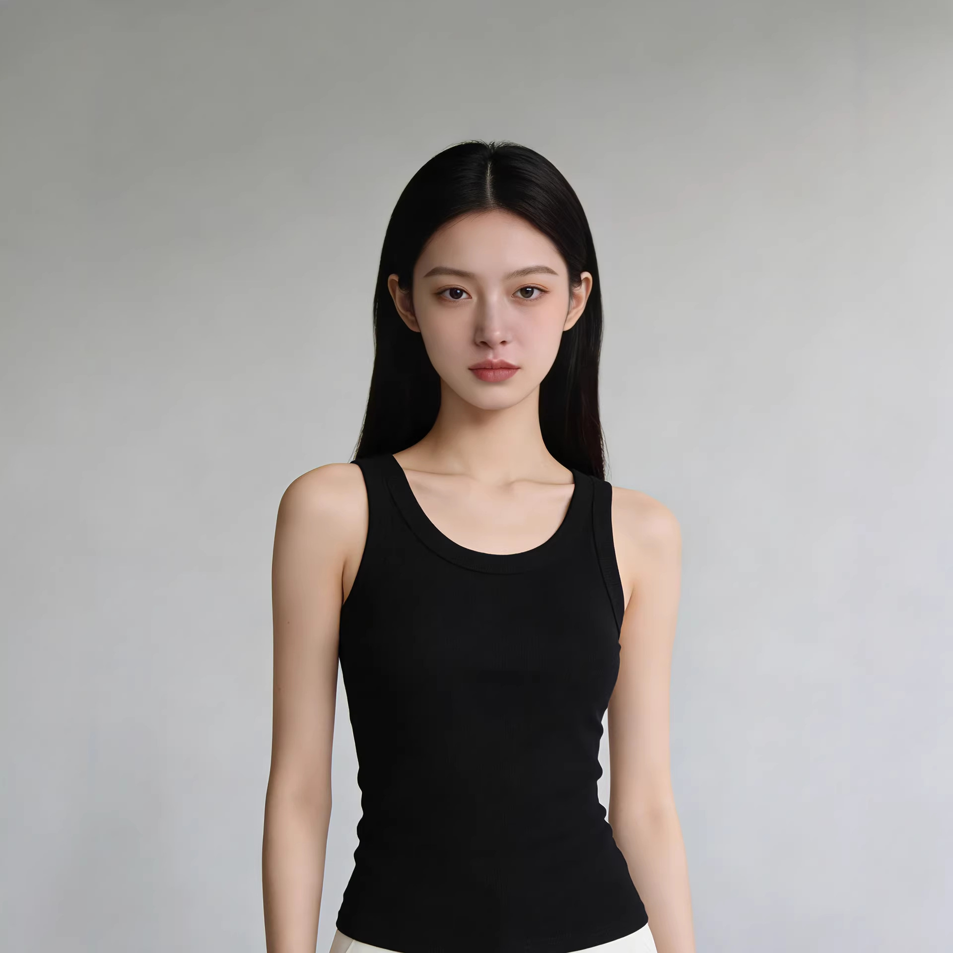 Kamisol Hitam Tank-top Wanita Dalaman 2024 Desain Katun Sisir Model Baru Rompi Huruf Slim Fit Rompi Tali Bahu Tipis Ganda