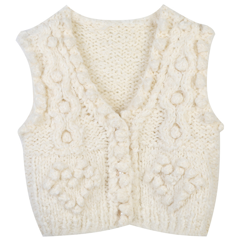 Kardigan rajut leher V wanita, rompi pendek warna polos rajutan longgar temperamen malas musim gugur dan musim dingin 2023