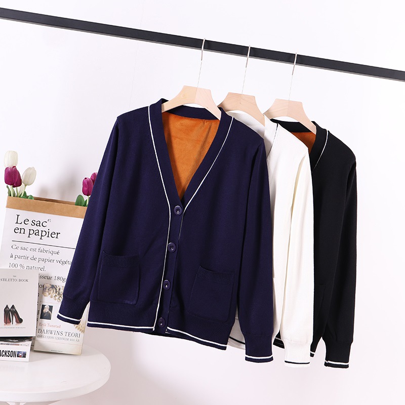 Sweater wanita, sweater lapisan bulu tebal hangat pakaian perawat dokter pakaian luar musim gugur dan musim dingin dipertebal ukuran besar mantel overall