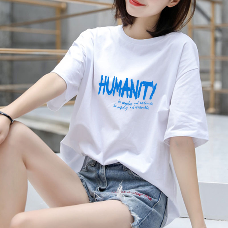 T-shirt Katun Murni Lengan Pendek Wanita Musim Panas Model Baru Longgar Putih Ukuran Besar Atasan Katun Murni Lengan Setengah Mudah Dipadu Padan