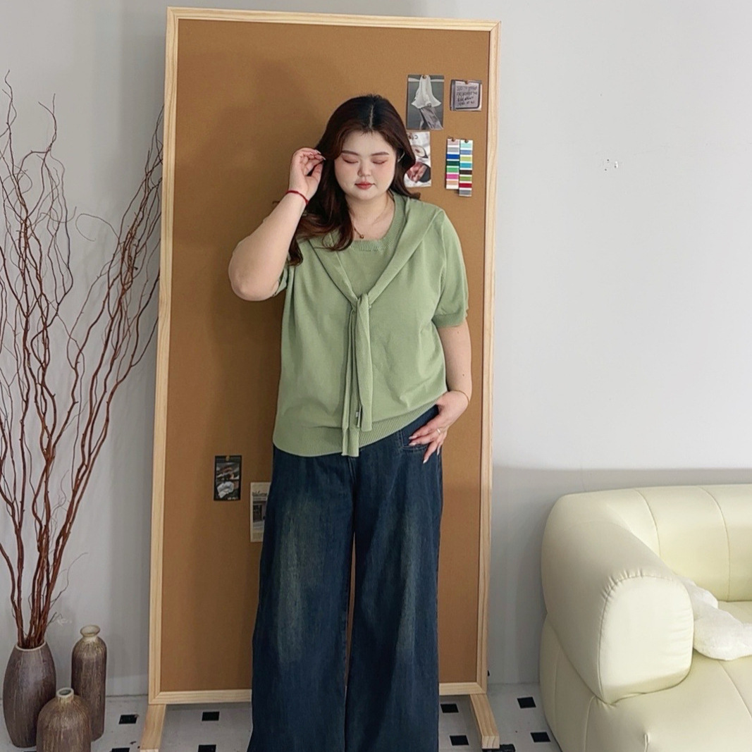 Pakaian Wanita Ukuran Besar Atasan Lengan Pendek Rajutan Selendang Elegan Awal Musim Semi Gaya Korea 2025 Atasan Rajutan Lembut Lilin Terlihat Langsing Instagram