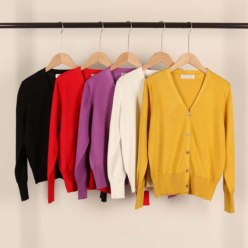 Kardigan V-neck wanita, setelan sweater kasual lengan panjang, sweater serbaguna tipis ukuran besar longgar, kardigan V-neck baru musim semi dan musim panas