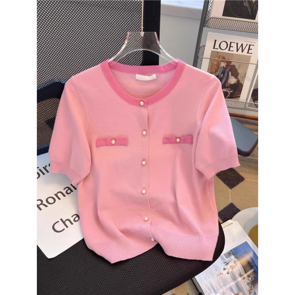 Kaos Lengan Pendek Gaya Taman Monai Pakaian Wanita Ukuran Besar Musim Panas Terlihat Langsing Longgar Atasan Rajutan Sutra Es Gaya Barat Gaya Prancis A3659