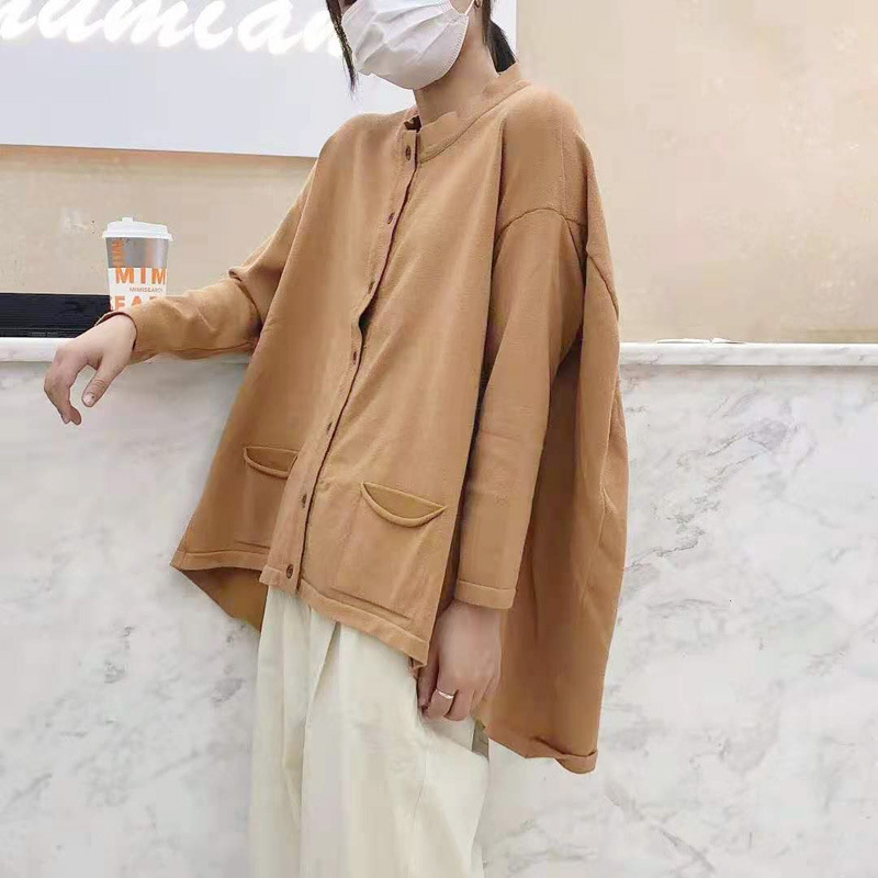 Kardigan artistik longgar ukuran besar, mantel sweater lengan sayap kelelawar tidak beraturan, 9108 pasang musim gugur dan musim dingin