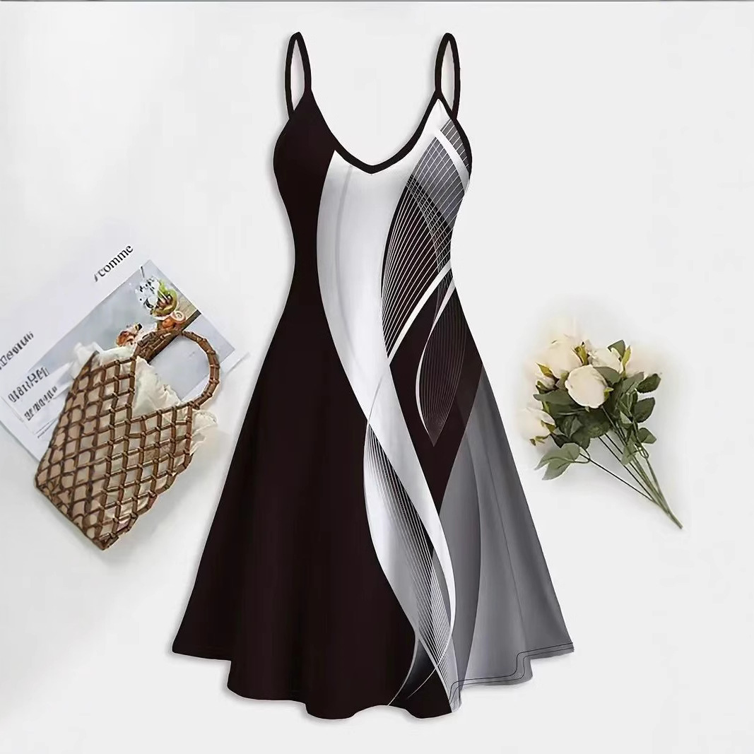 Gaun Sling Ukuran Besar Percetakan Digital 3D Seksi Lintas Batas Amazon Model Baru Musim Semi dan Musim Panas Eropa dan Amerika