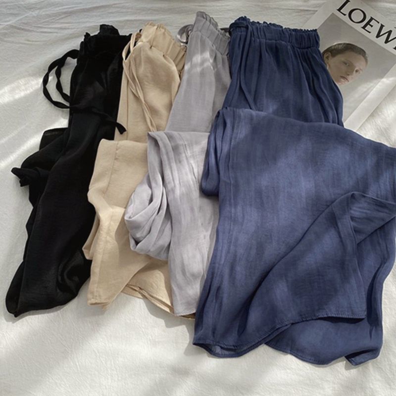 Celana ekstra besar wanita, bawahan sutra buatan pinggang elastis kaki lebar musim panas