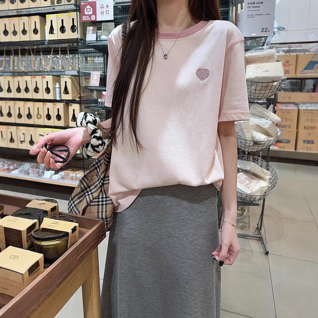 T-Shirt Lengan Pendek Mudah Dipadu Padan Kasual Musim Panas 2025 Atasan Kerah Bulat Longgar Bordir Trendi Model Baru Pakaian Wanita Ukuran Besar