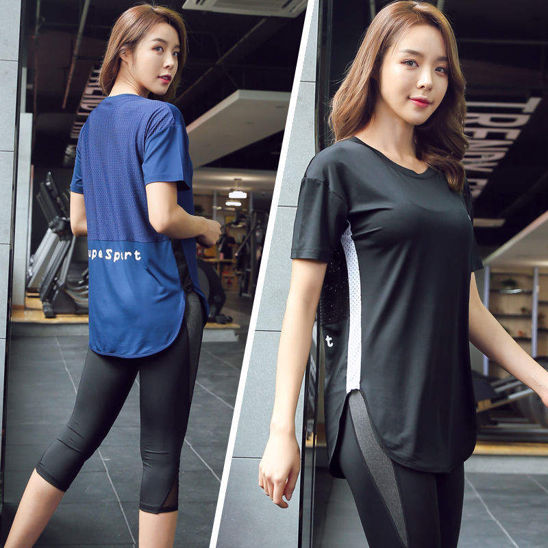 Atasan Yoga Model Panjang Longgar Wanita Blus Cepat Kering Setelan Kebugaran Ukuran Besar T-shirt Olahraga Pakaian Menutupi Pinggul Wanita Gemuk Musim Panas