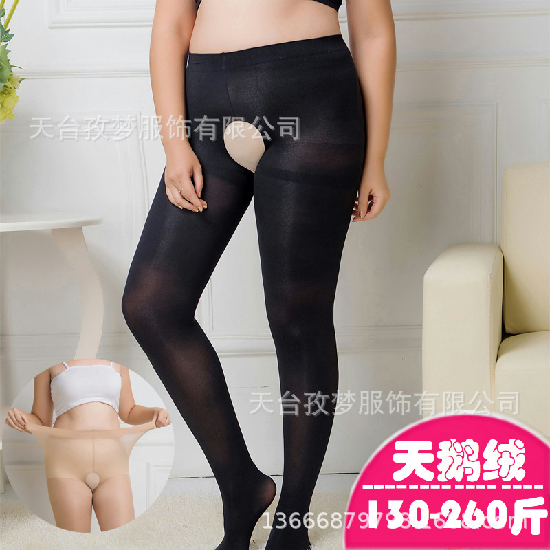 Pantyhose 120D terbuka ukuran besar wanita gemuk gadis beludru seksi tanpa pakaian stoking semi-transparan
