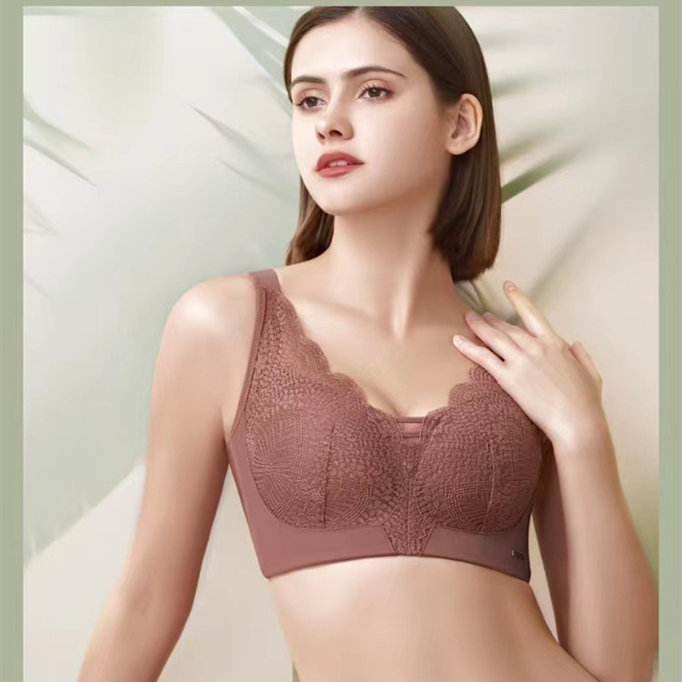 Bra nirkabel tipis ukuran besar lintas batas untuk wanita paruh baya dengan tali bahu lebar, anti tembus pandang, bra push-up.