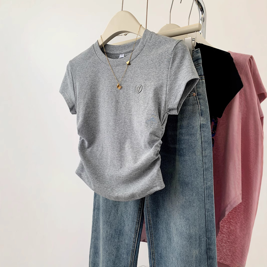 Pakaian Wanita Ukuran Besar Kaus Lengan Pendek Bordir Desain Unik Atasan Wanita Menutupi Perut Wanita Gemuk Musim Panas Mudah Dipadu Padan Terlihat Langsing