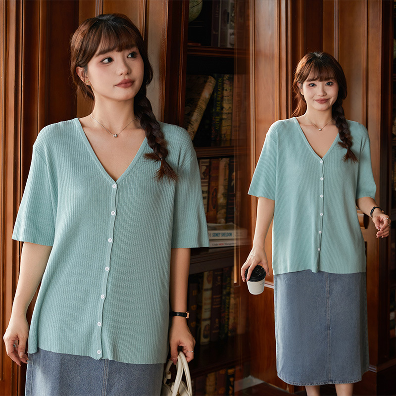 Kardigan Rajutan Unik dan Unik Model Baru Musim Panas Lengan Pendek Atasan Ukuran Besar Wanita Gemuk Berukuran 200Kg Kelas Atas 9169