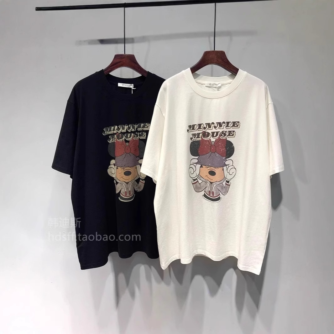 Kaus Mickey Lengan Pendek Dongdaemun Korea Atasan Katun Murni Ukuran Besar Musim Panas Gaya Korea Longgar Wanita Atasan Dasar Trendi Nasional Instagram