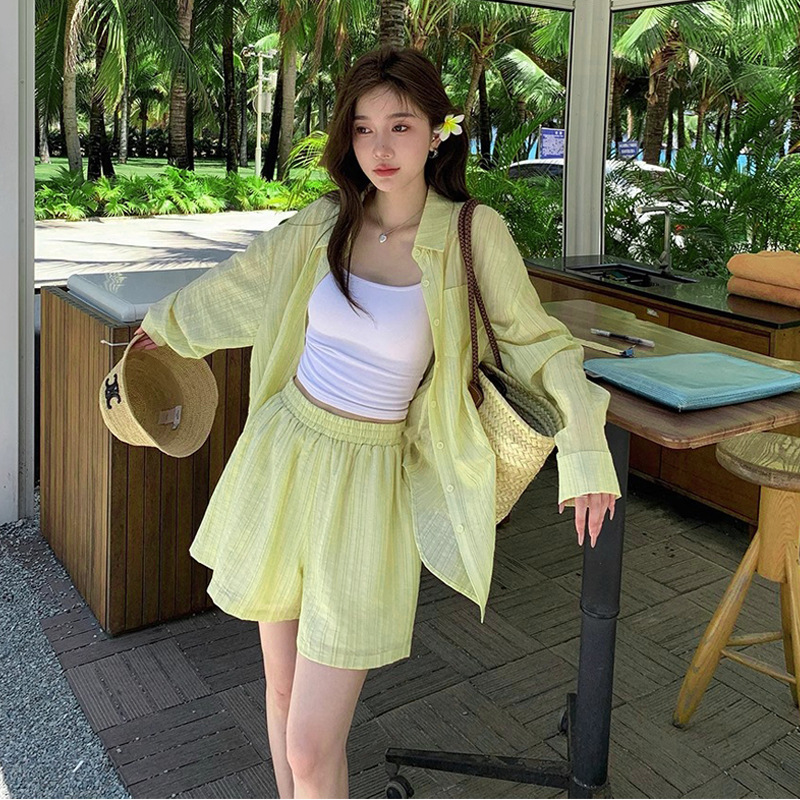 Kemeja Anti Matahari Lengan Panjang Longgar Musim Panas Model Baru Wanita Serat Tens Lysel 2 Set Dua Potong