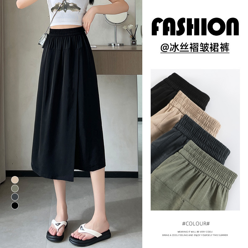 Rok Rok Tujuh Poin Sutra Es Model Baru 2024 Rok Celana Kaki Lebar Longgar Mudah Dipadu Padan Longgar Pinggang Tinggi Terlihat Ramping Lembut Model Tipis Musim Panas Wanita