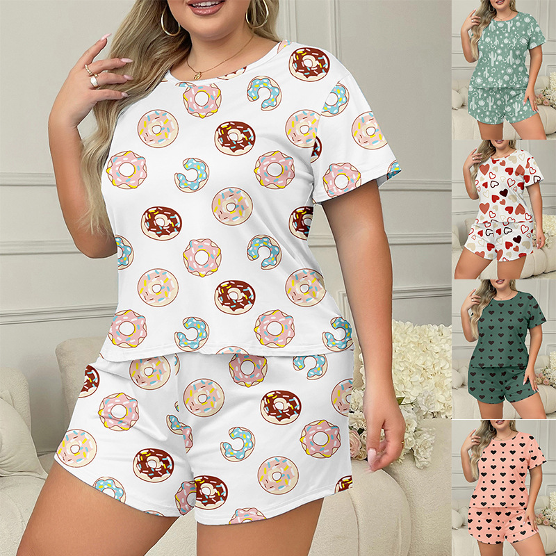 T-Shirt Musim Panas Lintas Batas Musim Panas temu Celana Pendek Piyama Wanita Ukuran Besar Pakaian Rumah Ukuran Besar Setelan Dua Potong Kasual