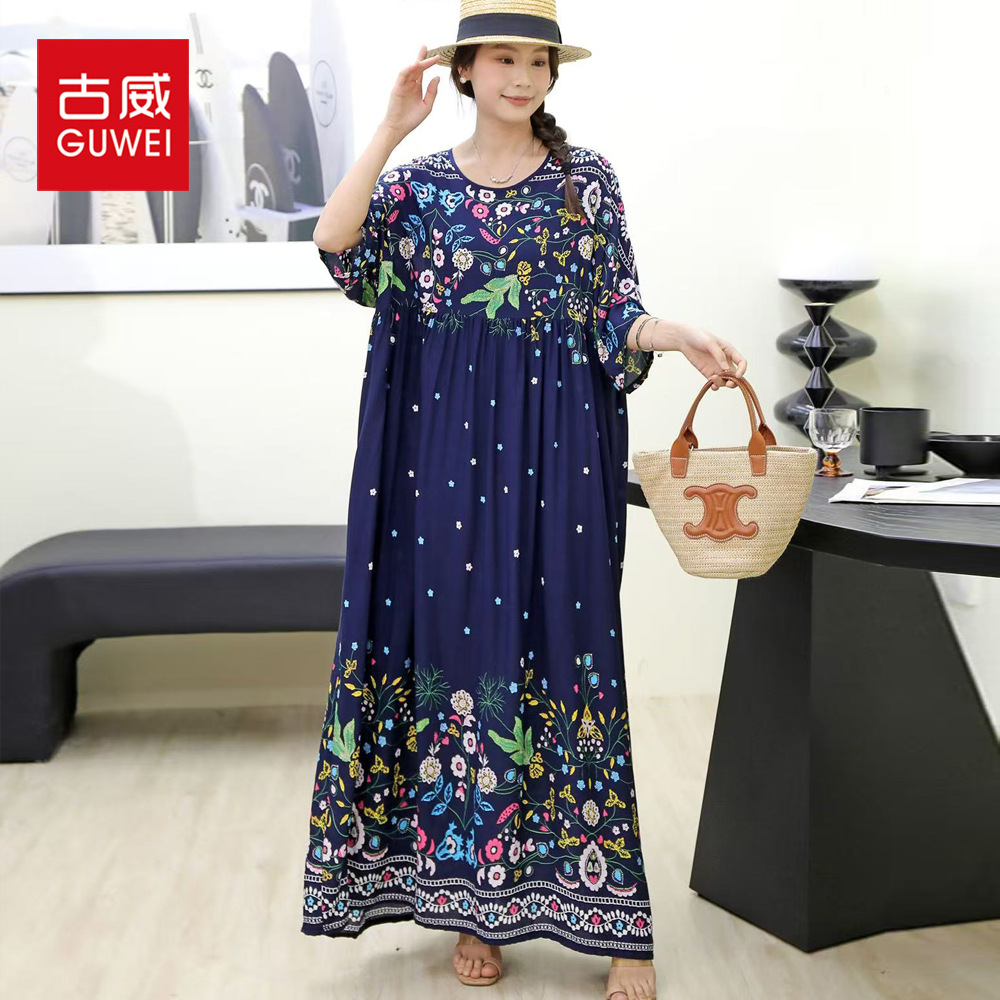 Pakaian Wanita Ukuran Besar Gaun Wanita Musim Panas Rok Panjang Rok Besar Rok Asimeia Liburan Perjalanan Retro Longgar