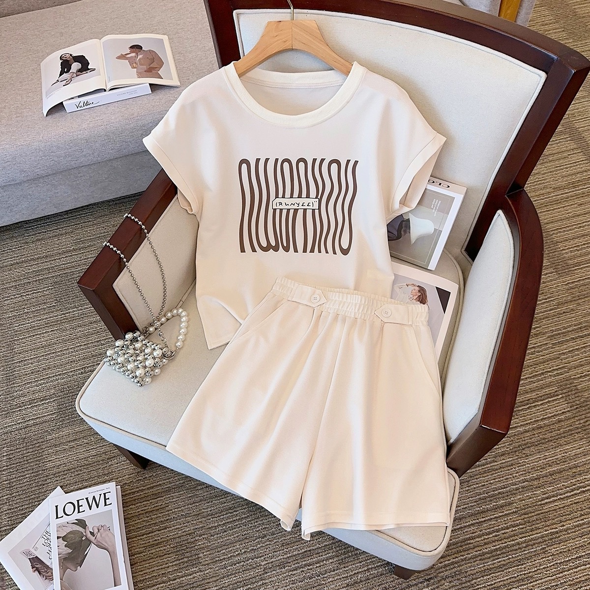 Setelan Musim Panas 2025 Celana Panjang Lengan Pendek Kasual Modis Longgar Wanita Gemuk Pakaian Olahraga Dua Potong Pakaian Wanita Ukuran Besar