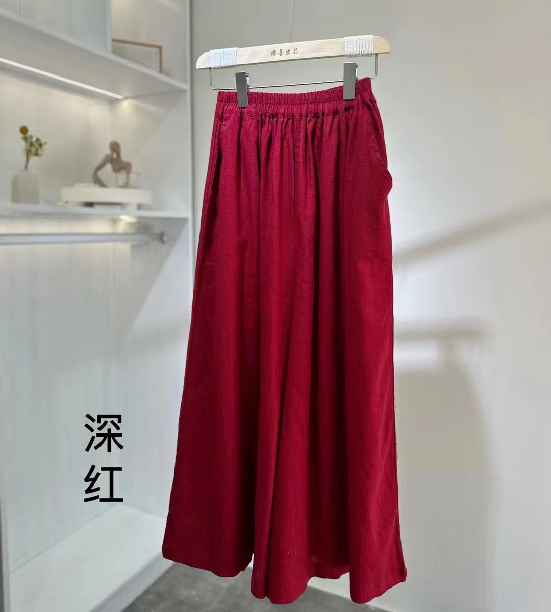 Celana panjang wanita, Linen longgar elastis pinggang tinggi celana kaki lebar wanita ukuran besar musim semi warna solid celana kasual rok celana wanita