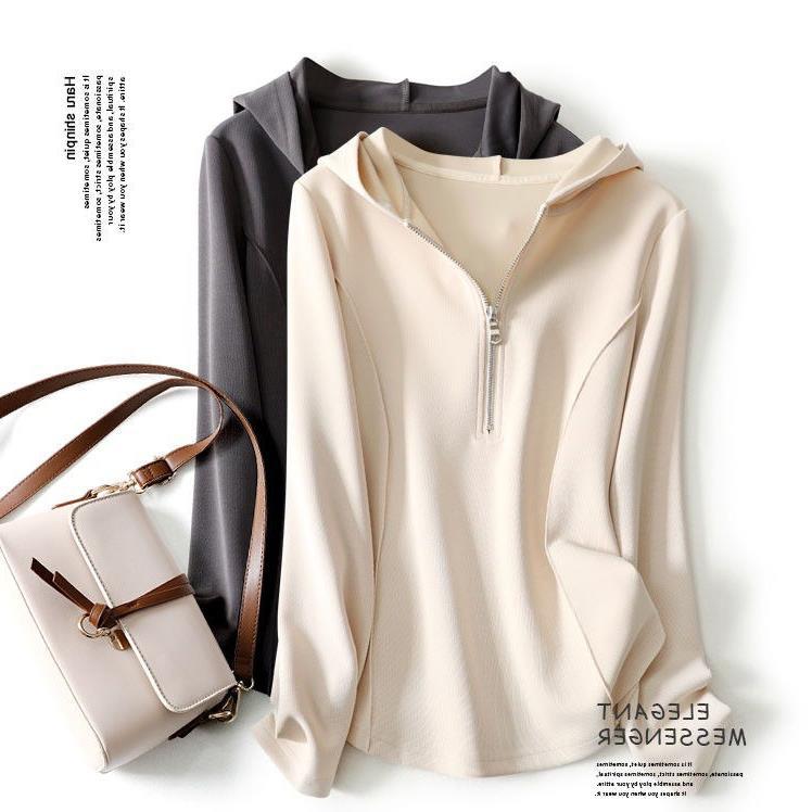 Pakaian wanita ukuran besar, kaus atasan pelangsing berkerudung lengan panjang, penutup daging Musim Semi dan Gugur