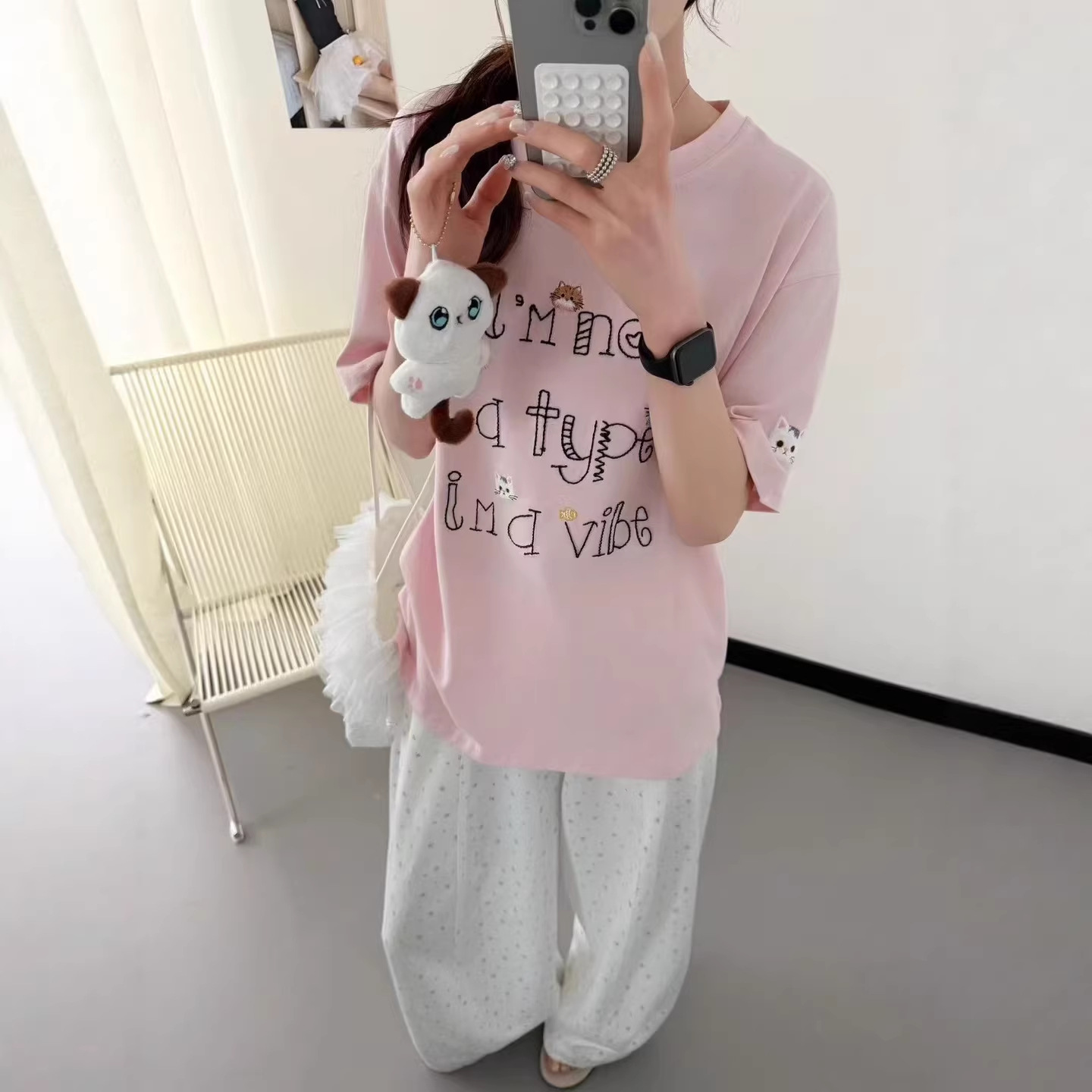Kaus lengan pendek bordir untuk wanita ins trendi Musim Panas 2024 baru Korea Selatan longgar ukuran plus kaus pelajar Dongdaemun pakaian wanita