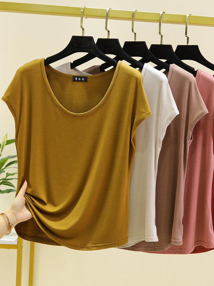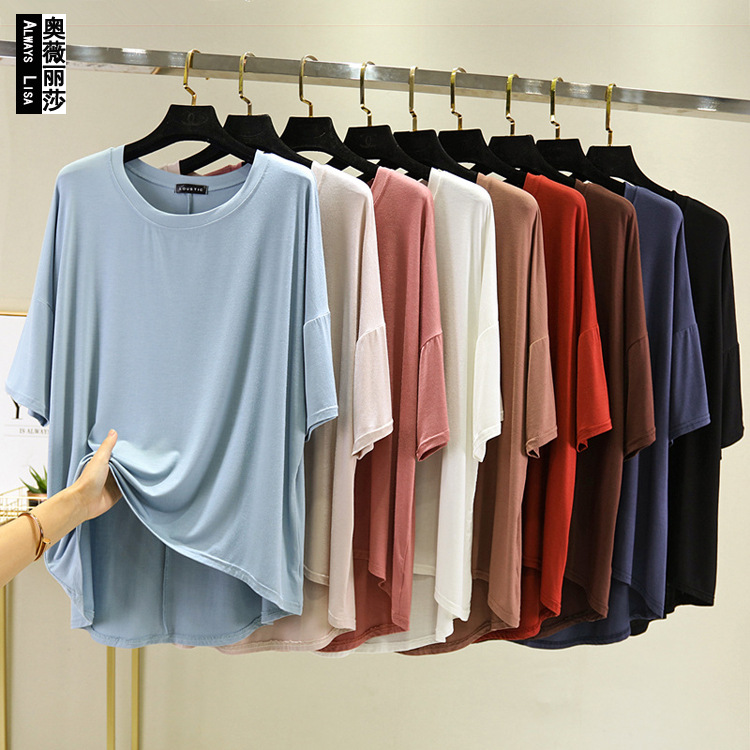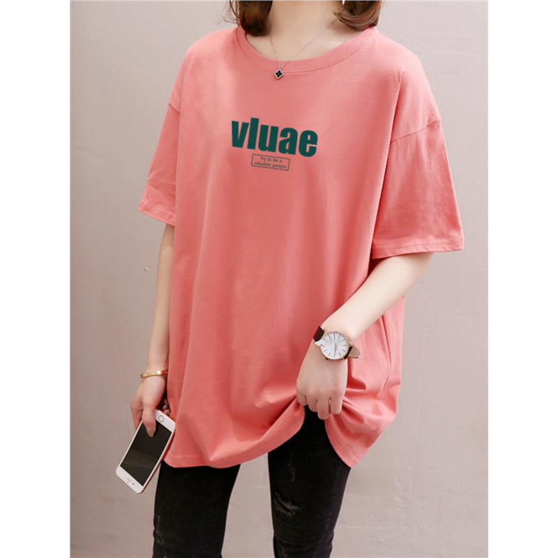 Kaus katun wanita lengan setengah, kaos longgar gaya Korea modal tipis atasan lengan setengah ukuran besar lengan setengah musim panas