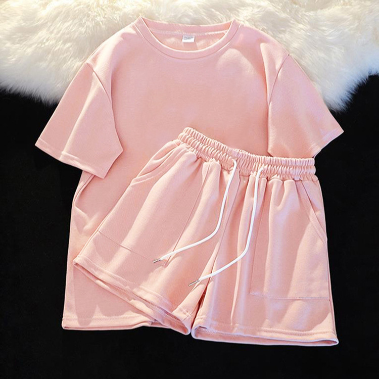 Musim semi dan musim panas ukuran besar longgar elegan kasual gaya Barat pengurang usia susu sutra lengan pendek warna solid setelan olahraga perdagangan luar negeri grosir