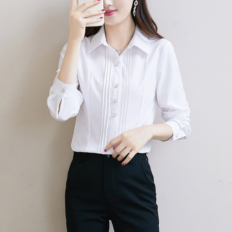 Kemeja lengan panjang 214 wanita gemuk ukuran plus slim-fit komuter kemeja dasar profesional kelas atas