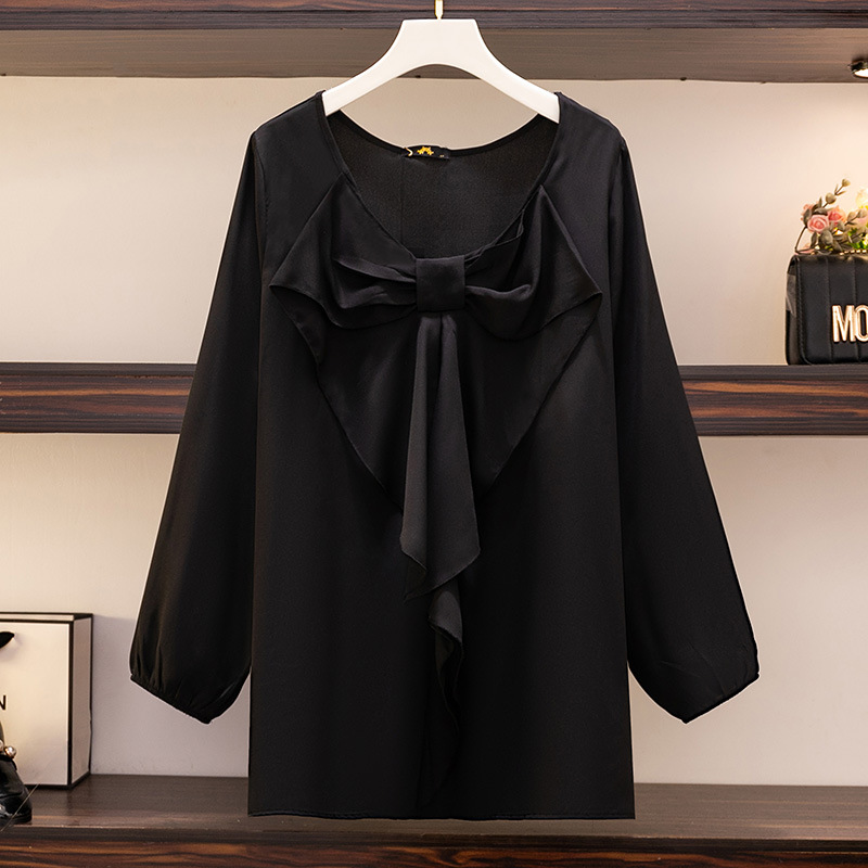 Pakaian wanita ukuran besar musim semi baru ukuran Plus desain saudara perempuan berpita Atasan kemeja wanita 63358