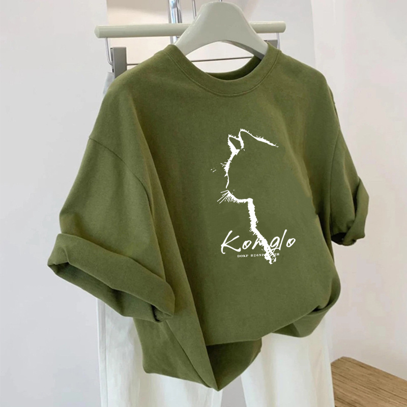 T-shirt Longgar Katun Murni Wanita Lintas Batas Ukuran Besar Wanita Wanita Gemuk Baju Atasan Kasual Pasangan Pelajar Lengan Pendek Musim Panas Grosir
