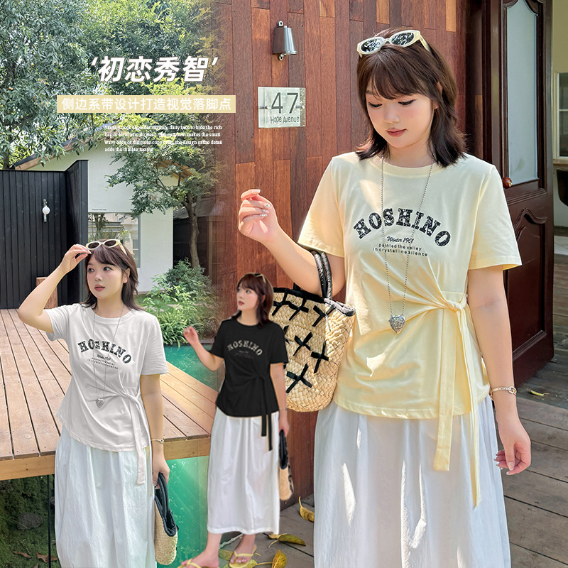 Pakaian Wanita Ukuran Besar Ino Kaos Lengan Pendek Kerah Bulat Bahu Gaya Korea 2025 Atasan Tali Tidak Beraturan Musim Panas Wanita 262752