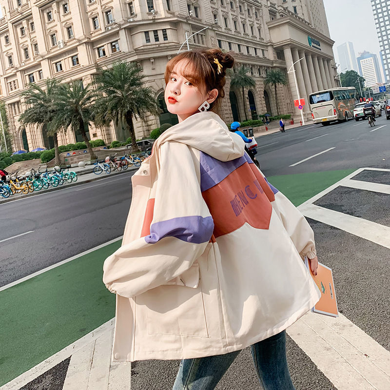 Jaket penahan angin siswa BF, jaket windbreaker seragam bisbol kasual Semua cocok gaya Korea longgar Musim Semi dan Gugur